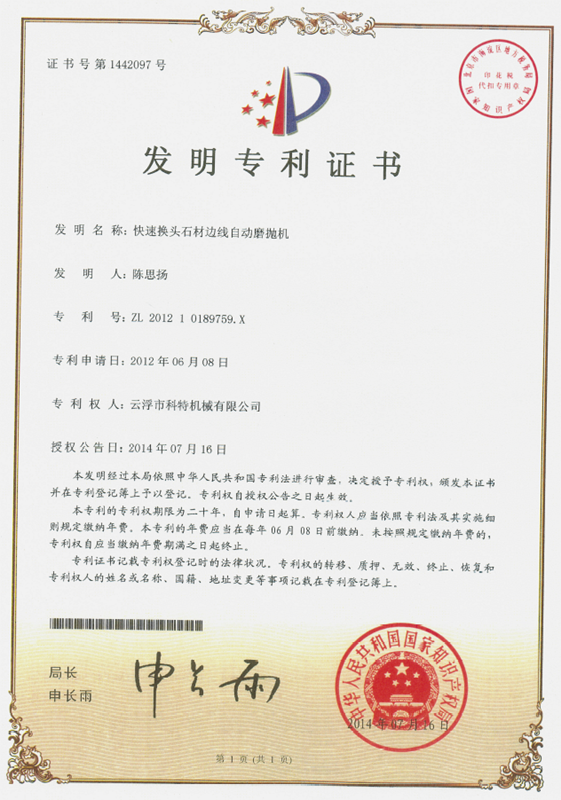 企業(yè)組建了“云浮市石材機械裝備工程技術研究開發(fā)中心”,并與高校和科研院所密切合作,致力于光機電一體化產(chǎn)品的研發(fā)、生產(chǎn)、銷售和服務。主要產(chǎn)品有框架鋸、全自動連續(xù)磨拋機、橋式自動切割機、全自動仿形石線機、數(shù)控金剛石繩鋸、裁切機等。產(chǎn)品具有自動化程度高、加工精度高和生產(chǎn)效率高等特點。產(chǎn)品除國內銷售外,還出口到歐美、東南亞、韓國、印度、中東、非洲、俄羅斯、澳大利亞等國家和地區(qū),深受用戶好評。“橋式自動切割機”被認定為廣東省高新技術產(chǎn)品,擁有發(fā)明專利1項、實用新型專利1項。